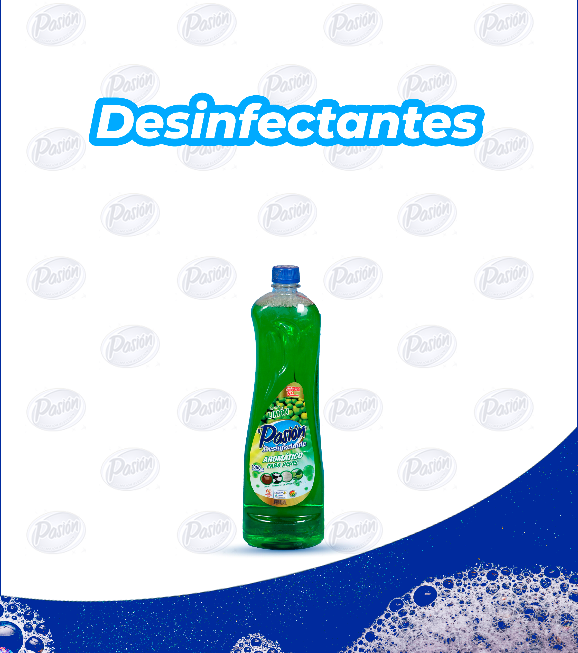 El Desinfectante de piso Pasión aroma limón está formulado para limpiar, desinfectar y perfumar eficazmente todo tipo de superficies lavables, como pisos, azulejos, baños y áreas comunes. Su fórmula balanceada elimina bacterias, gérmenes y malos olores, dejando un ambiente fresco y agradable gracias a su característico aroma cítrico a limón. Es ideal tanto para el hogar como para uso institucional o comercial.